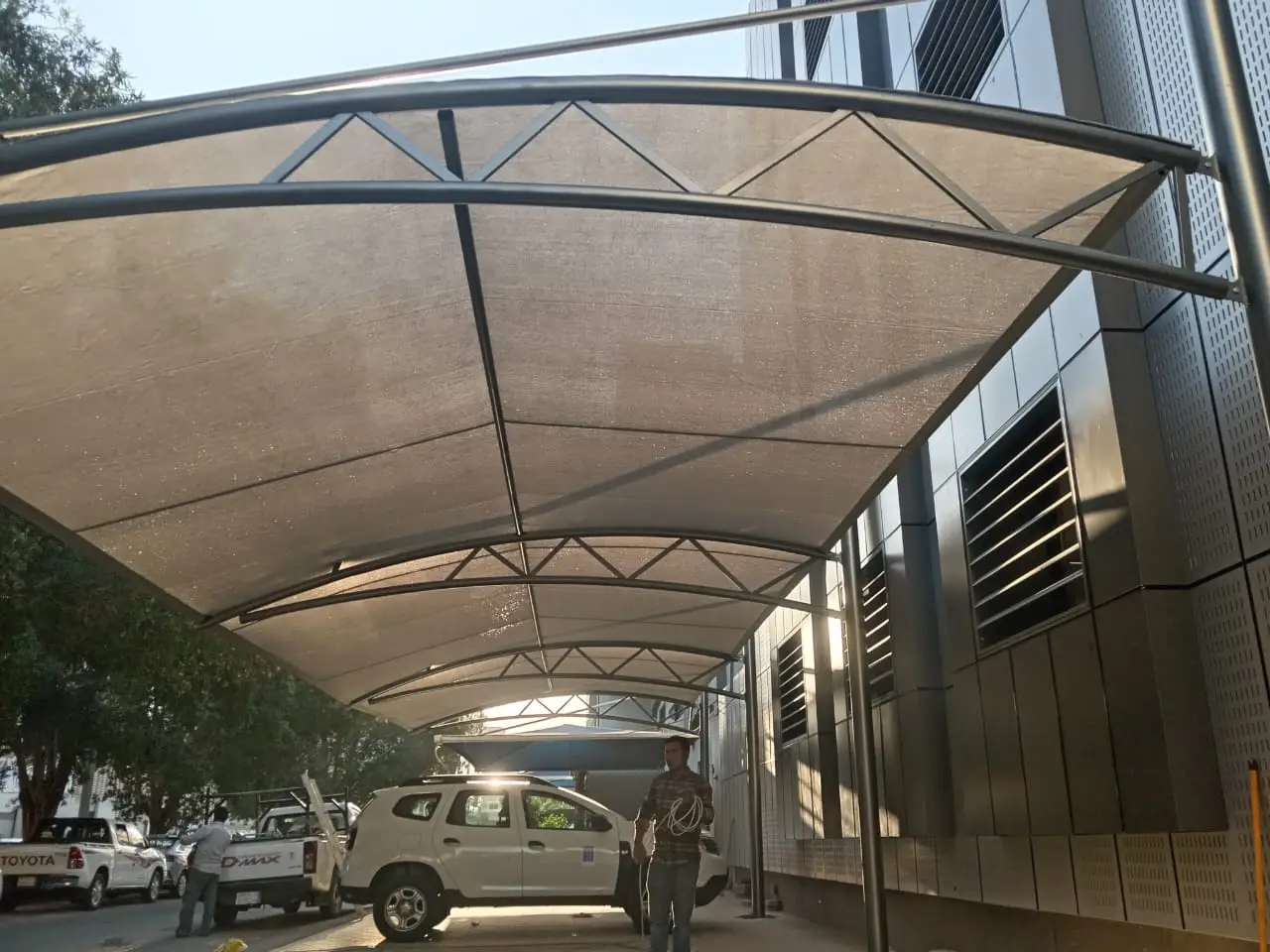 أكثر ما يميز المظلات المقوسة هو شكلها المنحني الأنيق الذي يضيف لمسة معمارية حديثة، ويجعل المكان يبدو أكثر فخامة وتنظيماً سواء أمام المنازل أو في المواقف العامة.
